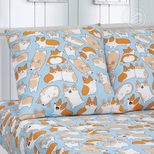 На постельном белье из поплина «Рыжик» маленькие щенки, которые любят гулять и играть дни напролет. Вот сидит малыш в зеленой кепке, а вот другой щенок дремлет и мечтает о косточке, а вот и третий сорванец виляет хвостиком.