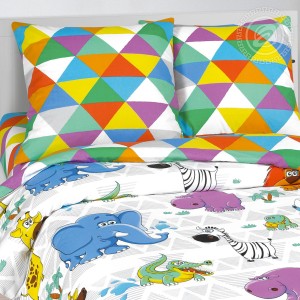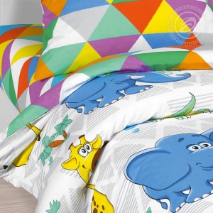Зверята из далекой и жаркой Африки поселились на постельном белье из поплина. Храбрый лев, грациозный жираф, полосатая зебра, добрый слон, веселый крокодил, - наши дизайнеры смогли собрать самых ярких животных в веселом зоопарке.