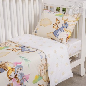 «Воздушный замок» – комплект постельного белья из поплина для юных рыцарей и принцесс. На ткани чудесный и очаровательный рисунок с волшебными героями.