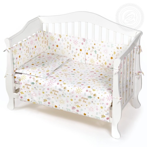 Пододеяльник на молнии: 1 шт. - 145*110; Простыня на резинке: 1 шт. - 60*120; Наволочка на молнии: 1 шт. - 40*60