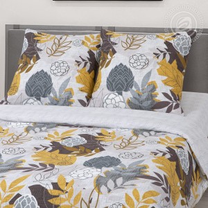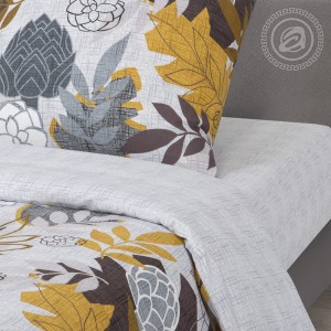 Стильно, необычно, актуально, - так можно охарактеризовать яркий дизайн «Артишок», который украсил комплект из бязи от производителя. Популярный овощ артишок, напоминающий цветок, гармонично дополнен желтыми листьями, которые образуют яркий орнамент. Оригинальная композиция удачно оттенена нейтральным серым фоном, где основные узоры смотрятся еще насыщеннее.