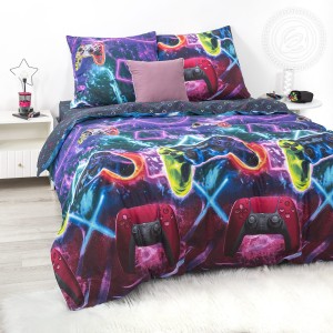 «Джойстик» – трендовый рисунок для настоящих геймеров. Это современное постельное белье из бязи в неоновых цветах с хорошо знакомым геймпадом. Рисунок в ультрамодном стиле точно понравится тем, кто любит лор приключенческих игр, влегкую выносит катки и получает заслуженные ачивки. Погрузитесь в мир ярких эмоций с комплектом «Джойстик»!