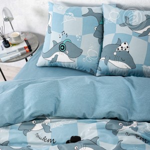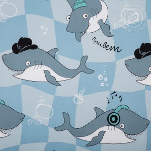 «Гавань» – хит нашей коллекции! Постельное белье с акулами из бязи понравится и детям, и подросткам, и взрослым. Это актуальный принт на все времена и все сезоны. Он сочетает тренды и вызывает эмоции. На рисунке очаровательные акулы, которые притягивают взгляды. Среди наших героев модники, меломаны и сони. Все они забавные и очень милые. А дополняет принт узор в морской палитре.