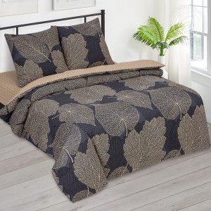 Комплект из бязи собственного производства «Майрон» чудесно подойдет для обновления интерьера к сезону. Композиция выполнена в приглушенных тонах и украшена необычным орнаментом. Постельное белье с листьями поможет создать в спальне уютную и сказочную атмосферу. Это модное дизайнерское решение для оформления дома.