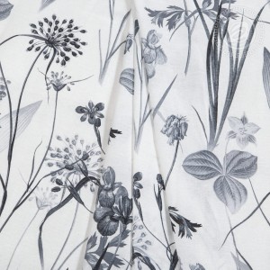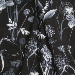 Комбинацию контрастов дополняет растительный принт, выполненный в виде контурных изображений весенних цветов. На рисунке душистые ландыши и нарциссы.