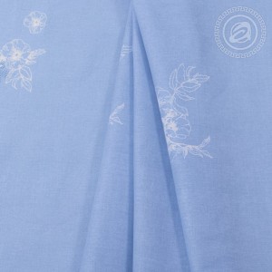Безоблачное голубое небо, маленькие элегантные цветочки, изображенные лишь контурами, - взору открывается красивый пейзаж, который наполнен свежестью, очарованием и невыразимой притягательностью. Хочется оказаться в этом чарующем уголке, полюбоваться весенней оранжереей и о чем-то помечтать.