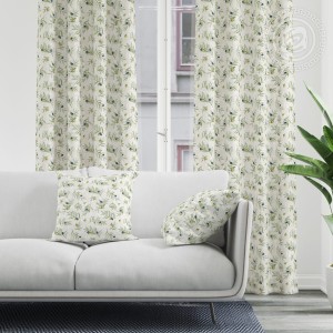 Рисунок «Долина» представляет собой утонченный узор в виде оливковых веточек. Эти нежные мотивы, как и настоящая олива, символизируют мир, благополучие и спокойствие. Ткань рогожка оптом от производителя в светлых оттенках и с изысканным орнаментом выглядит эффектно и воздушно.