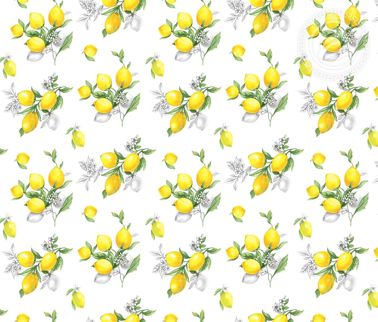 Светлые оттенки в сочетании с желтыми лимонами создают радостное летнее настроение. Легкость, воздушность, энергия – только несколько эмоций, которые возникают при взгляде на дизайн «Лимоны».
