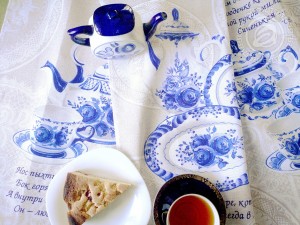«Мамин чайник» – практичная и экологичная ткань рогожка бежевая с оригинальным рисунком. На ней представлен чайный сервиз с милыми чашечками, чайником и блюдцами в бело-синих цветах. Композиция сопровождается интересными загадками. Рогожка с принтом хорошо подойдет для пошива кухонных полотенец, которые смогут порадовать не только маму, но и всю семью.