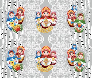 Дизайн с матрешками и березками олицетворяет народный колорит и хорошо подходит для пошива текстильных изделий, таких как полотенца, шопперы, декоративные наволочки и других памятных сувениров. Это частичка русской души и культуры.