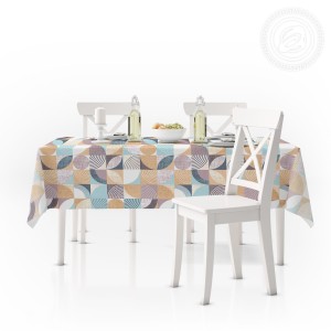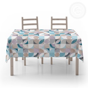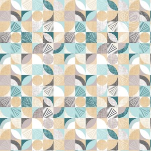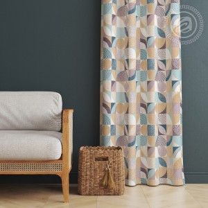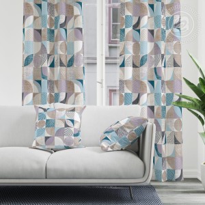 На ткани рогожка «Марципан» оригинальный принт с геометрическими фигурами. Он выполнен в приглушенных оттенках с кругами, полукругами и линиями, вписанными в квадраты. Авторский рисунок представляет собой эклектичную композицию, которая при этом очень проста и лаконична.