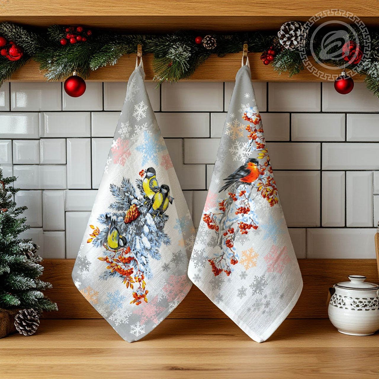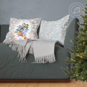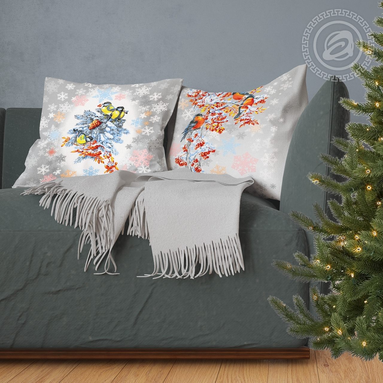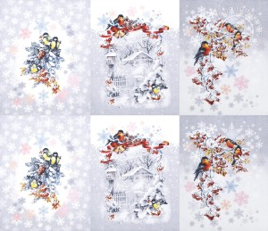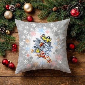 Блестящий алмазный иней, мягкие пушинки чистого белого снега и красная рябинка на изделии из рогожки передает чудесное настроение и воспоминания о зиме. Красные снегири и желто-голубые синички придают ему гармоничности и воскрешают из прошлого сладостные звуки их голосов.