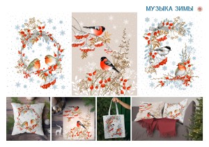 «Музыка зимы» – новогодняя ткань с очень нежным рисунком. На нем отображено всё, с чем у нас ассоциируется эта сказочная пора. Пушистые снегири, сидящие на ветках ярко-красной рябины, легкие снежинки, парящие в воздухе, – всё это создает ощущение праздника, волшебства, чудес.