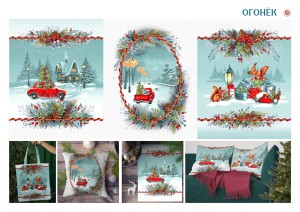 Приглашаем Вас в настоящую зимнюю сказку! Здесь всё пропитано волшебством и магией Нового года. Тихие и уютные заснеженные улочки, горы подарков с яркими лентами, автомобили, спешащие домой с наряженными ёлочками. А обрамляет эти праздничные картины стильный орнамент с шишками и колокольчиками.