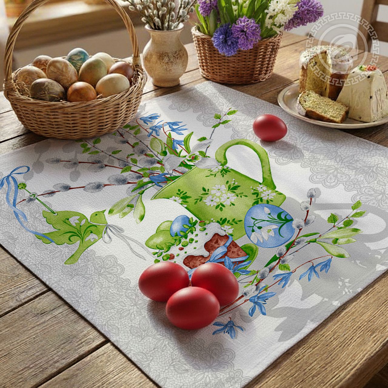 «Пасха» – праздничный дизайн, который окутывает светом и теплом. На рогожке из 100% хлопка изображены пасхальные мотивы: от нежных и пушистых веточек вербы до нарядных куличей. Композиция полна легкости, мягкости и весеннего обновления. Пасхальный дизайн на ткани рогожка внесет в дом доброту и уют.