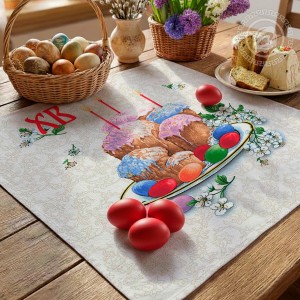 «Пасхальные традиции» – уникальный дизайн, который отражает самобытность и колорит светлого праздника. В центре композиции – знакомые всем угощения в виде куличей и Пасхи, а обрамляют их веточки вербы и весенние цветы. Рогожка с пасхальными мотивами – образ легкости, радости, добра и тепла.