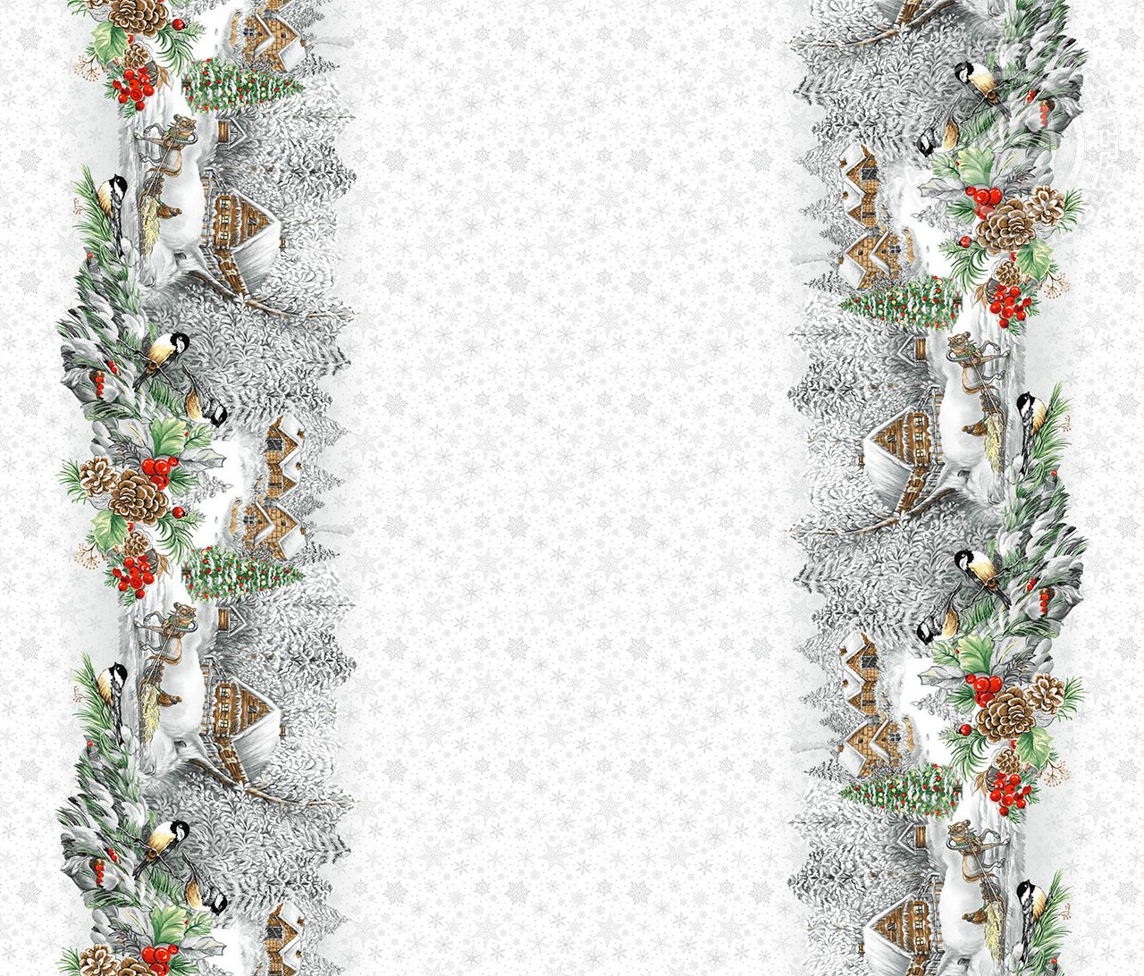 «Студеная пора» – праздничный дизайн, сошедший, словно со старых открыток. Акварельная композиция с деревенскими избами полна тепла и уюта. Она содержит ностальгические нотки с приятными воспоминаниями о волшебном празднике с пушистыми сугробами, красавицей-елью и невероятно завораживающими пейзажами зимнего леса. Новогодняя рогожка 150 см дарит ощущение магии и сказки.