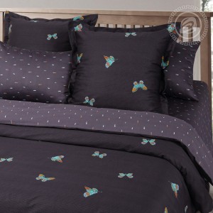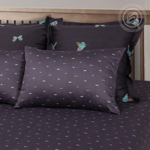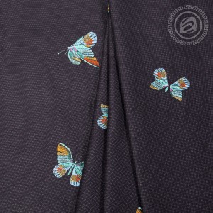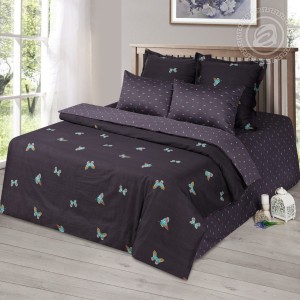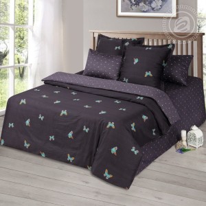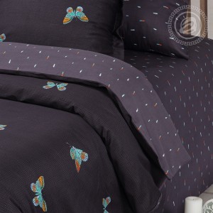Разноцветные бабочки «Махаон», так легко и грациозно порхающие с цветка на цветок, украсили темный комплект из сатина.