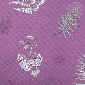 Сатин с новым дизайном «Форест» в нежных фиолетовых оттенках и с растительным орнаментом в виде папоротников, цветов и ягод украсит интерьер и внесет в него нотки легкости и красоты.
