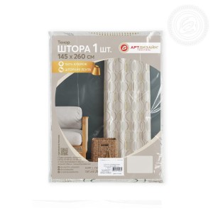 В комплект входит 1 штора со шторной лентой с размерами 145*260 см в модных расцветках и 1 подхват, который позволяет удобно и красиво зафиксировать штору на окне.