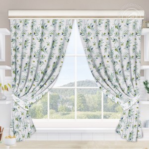 В комплект входят 2 шторы со шторной лентой с размерами 145*180 см в модных расцветках и 2 подхвата, которые позволяют удобно и красиво зафиксировать шторы на окнах.