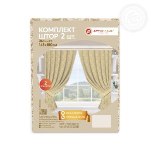 В комплект входят 2 шторы со шторной лентой с размерами 145*180 см в модных расцветках и 2 подхвата, которые позволяют удобно и красиво зафиксировать шторы на окнах.