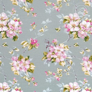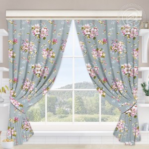 На рисунке штор изображены ветви цветущей вишни, «собранные» в изящные бутоньерки. Более крупные фрагменты композиции соединены друг с другом тонкими линиями-ветвями и нераспустившимися бутононами.