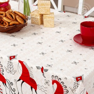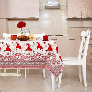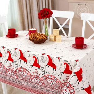Если Вы любите русские сказки, если с интересом рассматриваете старинные гравюры в музеях, то для Вас наши «Былины» с необыкновенным колоритом. Скатерть из рогожки украшена яркой и самобытной картиной с оригинальной росписью. Здесь и богатырские былинные кони, и орнаменты с уникальными деталями.