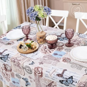 Новый рисунок на рогожке под названием «Либретто» насыщен и разнообразен в своем содержании: здесь можно увидеть деревянные двери со старинными ручками, отрывки из писем с рисунками, часы, букеты роз или единичные розочки, ключики и бабочки. Причем если в основном цвет всего изображения является бледно-розовым, то некоторые элементы окрашены в нежно-голубой цвет. Такое сочетание дополняет друг друга, принося некоторый акцент одного цвета на другой. Ткань выполнена качественно, а рисунок добавляет эстетической красоты и уникальности.
