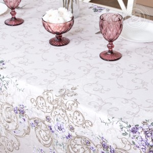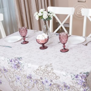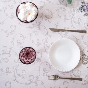 Скатерти из рогожки «Мазурка» олицетворяют изысканность и роскошь. Это красивый рисунок с нежными оттенками и растительным принтом, который смотрится лаконично и элегантно. Маленькие цветочки дополнены изящными вензелями. Дизайн легкий, воздушный, с весенними нотками.