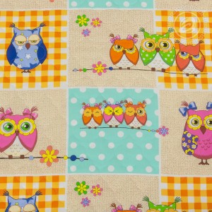 Главные героини рисунка «Соня» - разноцветные совы. Кто-то хмурится, кто-то смотрит вдаль, кто-то жмурится от удовольствия или от яркого солнца, но у большей части забавных подружек глаза закрываются в ожидании приятных сновидений. Фон композиции выполнен в форме крупных бежевых, голубых и оранжевых клеток, заполненных стилизованными цветами, горошинами и более мелкими клетками.
