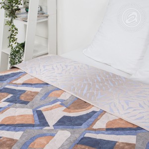 На ткани бязь эксклюзивный рисунок с композицией из геометрических фигур. Он выполнен в спокойных и теплых тонах, что несет ощущение уюта.