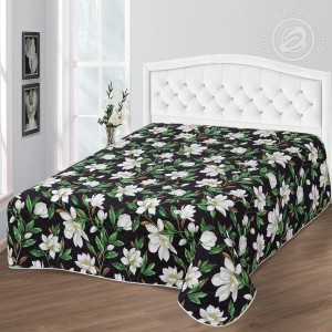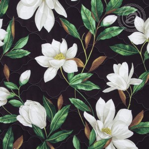 Модный принт с белыми магнолиями украсил покрывало «Фелиция». Белоснежные лепестки красивых цветов контрастируют с фоном в темной палитре. Композиция представляет собой гармоничное сплетение трендовых оттенков и элегантного рисунка, символизирующего женскую красоту и изящество.