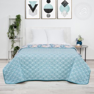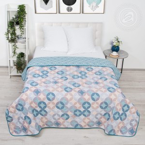 Как создать в спальне атмосферу комфорта и отдыха? Как добавить в привычный интерьер новизны и уюта? В этом поможет покрывало стеганое из поплина «Куба», которое смотрится свежо и модно. Композиция представляет собой интересное сочетание геометрических фигур в спокойной, нежной цветовой гамме.