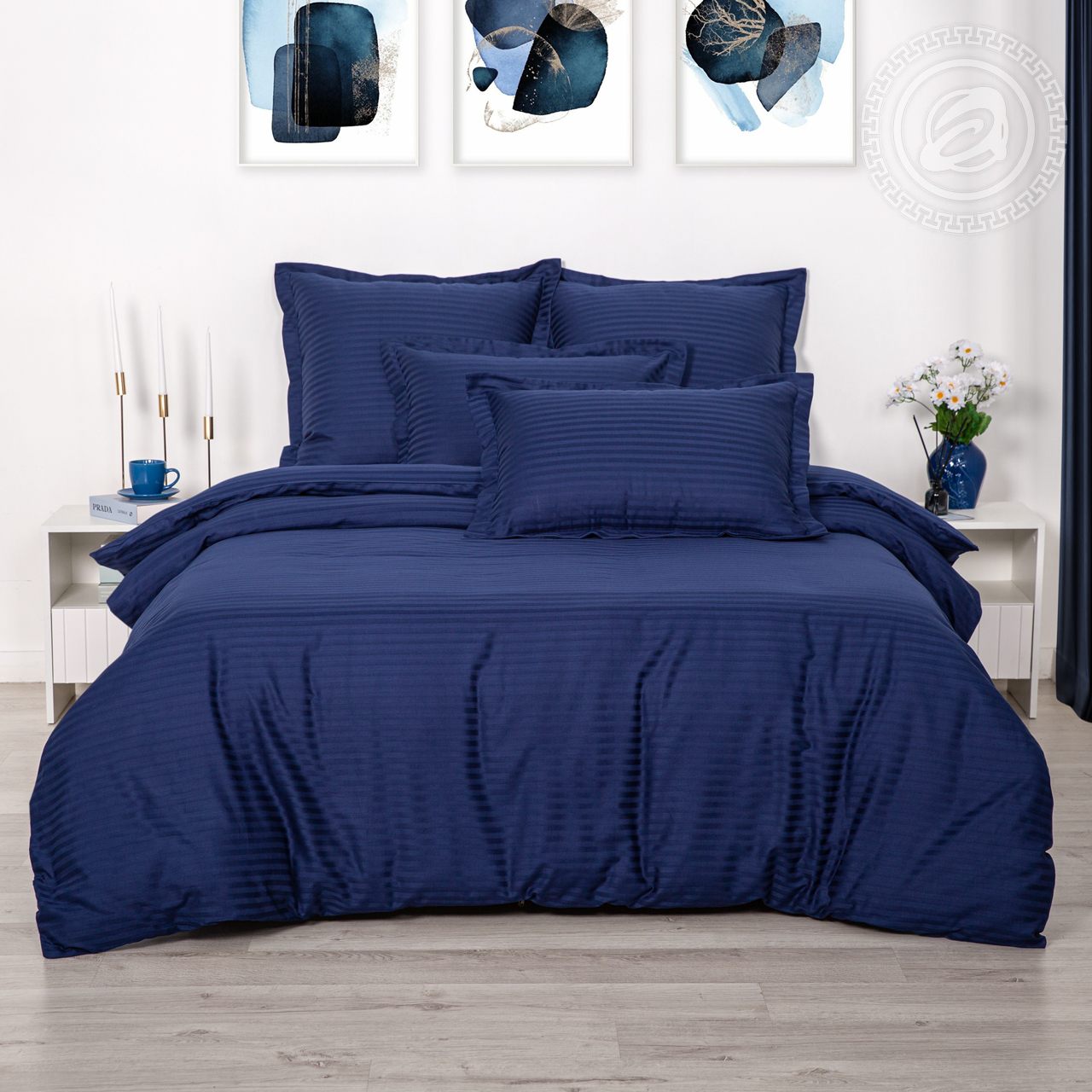 Глубокий и насыщенный оттенок «Индиго» добавит спальне элегантный акцент и настроение. Нотки ночного неба в интерьере дарят ощущение уверенности. Сатиновый блеск и полосы усиливают выразительность цвета, делая комплект ярким и запоминающимся.