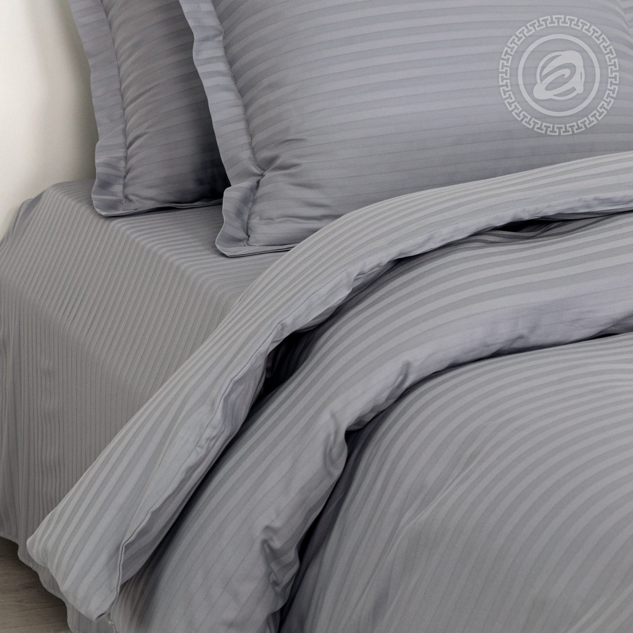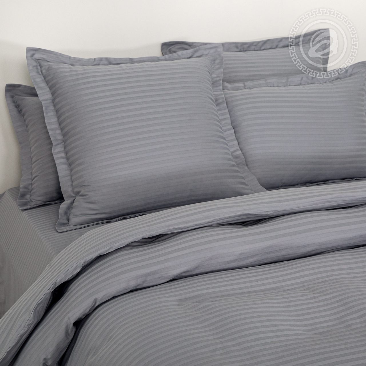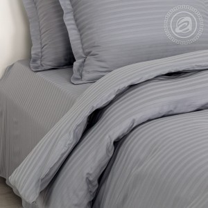 Страйп-сатин – это ткань с классическим жаккардовым плетением нитей, образующим чередование полос. В ее состав входит 100% хлопок, что обеспечивает двойной комфорт и исключительную мягкость материала. Одним из важных свойств ткани является ее способность сохранять форму. Даже при многократных стирках, она не вытянется и не потеряет характерный шелковистый блеск.