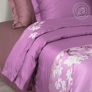«Бриджит» - комплект, достойный королей. Гладкая и мягкая ткань тенсел полна благородства и изысканности. А глубокий и насыщенный пурпурный цвет – это образ царственности, элегантности и изящества. Дизайн изделия украшен плавными переходами оттенков и белыми цветами. «Бриджит» - комплект для знатных особ.