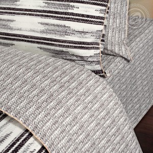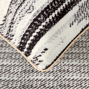 Если смотреть издалека, может показаться, что новый рисунок на ткани «Уэльс» - это сплошное изобилие черно-белых полос. Однако при ближайшем рассмотрении, становиться ясно, что ткань имеет бархатную поверхность, а изображение будто размыто. За счет этого с одной стороны рисунок выглядит очень стильно и элегантно, а с другой не раздражает своей резкостью. К тому же множество вкраплений еще больше сглаживают переходы от светлого цвета к темному, а серый позволяет создать тот стиль, который как раз и несет в себе вся композиция.