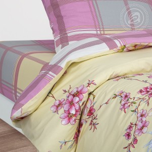 Светло-желтый фон рисунка «Утренний сад» неплотно заполнен ярким цветочным принтом среднего размера. В нижней части композиции видна сочная зеленая листва, из которой нежные розовые, янтарные, белые, малиновые, гранатовые бутоны поднимаются вверх и образуют в середине и вверху рисунка чуть более крупный принт. Нежно-серебристая реплика листвы, оттенки и свето-теневое решение подобраны таким образом, что рисунок кажется залитым лучами восходящего солнца.
