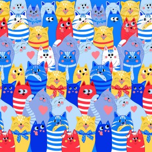 А на вафельной ткани «Полосатый рейс» таких котиков просто не счесть. Яркие, разноцветные и очень забавные, - эти зверята понравятся и взрослым, и детям.