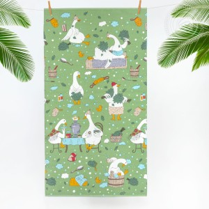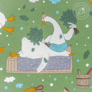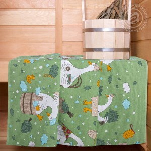 Вы скучали по дизайнам с гусями? Перед вами новый рисунок с любимыми героями! «Банщик» – вафельное полотенце банное с милыми и очаровательными птичками. Они отдыхают в бане, сидят за столом, попивая душистый чай из блюдец и делятся друг с другом интересными историями и новостями. На рисунке много знакомых и атмосферных деталей: деревянные кадушки с вениками, клубы пара и резиновые уточки. Это уютный дизайн для банного настроения! С легким паром!