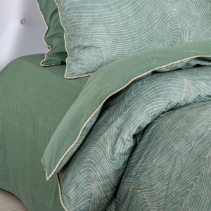 Комплекты выполнены из натуральных материалов, в основе которых лежит 100% хлопковое волокно. Саржевое переплетение придает ткани повышенную прочность и износоустойчивость, а мягкий равномерный начес (ворс) с лицевой стороны постельного белья дарит комфорт во время отдыха. Белье имеет необычайно нежную на ощупь текстуру, не скользит и прекрасно сохраняет форму. Швы пододеяльника и наволочек отделаны изысканным узким кантом.