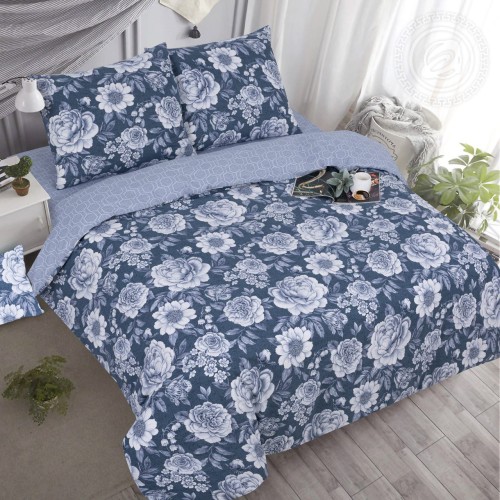 Коллекция:ЛЮКСМатериал:ПоплинЦвет:синий, серый, белыйРисунок:цветы