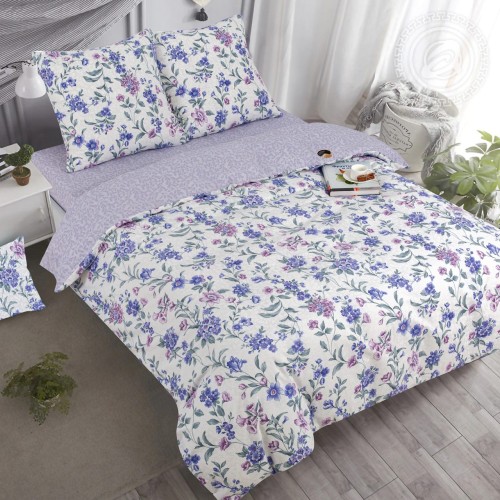 Коллекция:ЛЮКСМатериал:ПоплинЦвет:сиреневый, голубой, серыйРисунок:цветы, геометрия