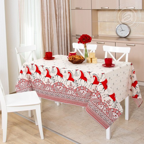 Здесь вы найдете полотенца из вафельного полотна и рогожки. Плотные, практичные скатерти. Подберете универсальный комплект для кухни – с прихватками, полотенцами или фартуком.