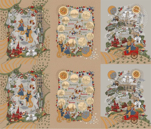 Коллекция:Рогожка 150 см.Материал:РогожкаЦвет:бежевый, коричневый, серыйРисунок:сувениры, животные