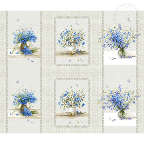 Коллекция:Рогожка 150 см.Материал:РогожкаЦвет:синий, бежевый, фиолетовыйРисунок:цветы