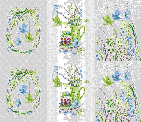 Коллекция:Рогожка 150 см.Материал:РогожкаЦвет:голубой, зеленый, серыйРисунок:праздники, цветы