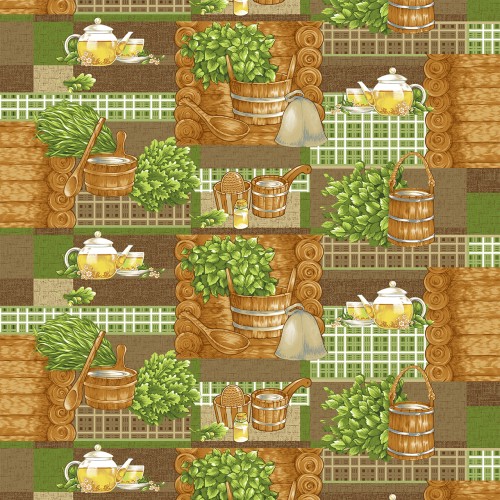 Коллекция:Вафельное полотноМатериал:Вафельное полотноЦвет:коричневый, зеленый, желтыйРисунок:баня