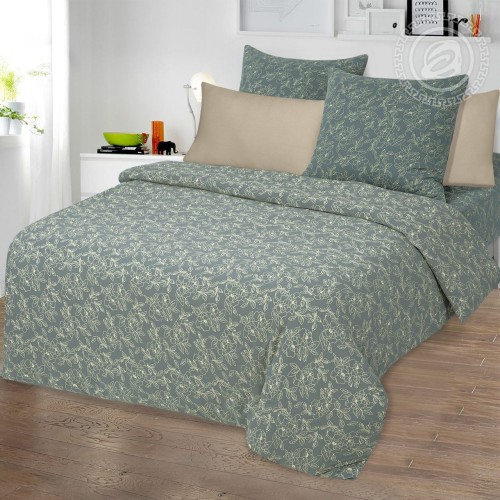 Пододеяльник трикотажный на молнии Цветы зеленые
